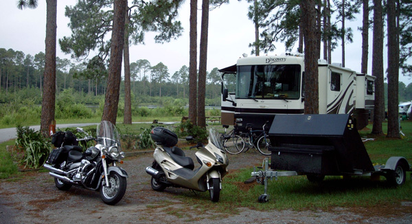 My Harley does not sit in the garage. I ride it everyday to work and whenever possible to run errands etc. Ev and I ride on it to church and around town just for the fun of it. Several times a month we go on rides with our HOG chapter or some other organization. But then there is more. We love the "road" so much that we have an RV which of course has a garage in the back for the Harley. So at least once a month we hit the open road for distant locations with the RV and the Harley securely tucked inside. Our destinations are rural and urban and everything inbetween. And when we get there, out comes the Harley and off we go.