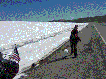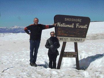 The ride over the Beartooth Pass is probably one of the top ten rides in the world. You virtually end up at the top of the world at 10,947 ft. It has been described as the most scenic road in the United States. Most of the year the pass is closed because of heavy snow but it is open for about 3 months during the summer. You can check on the road conditions by going to http://www.mdt.mt.gov/travinfo/beartooth/ .