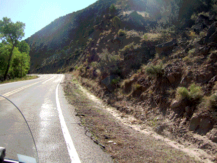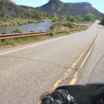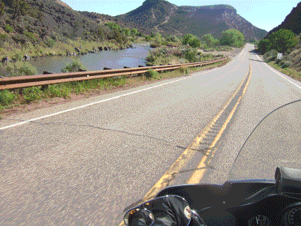 Much of the ride is through New Mexico desert with occasional patches of greenery. The road winds through small and large canyons and up and down with occasional switchbacks. It is a fun ride. The Rio Grande provides an oasis of green along its banks for many miles and as you climb to Red River the temperature drops and an evergreen forest surrounds you.